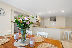 At the heart of the home, the well-appointed kitchen impresses with a breakfast bar, gas cooktop, under-bench oven and dishwasher-all seamlessly overlooking the meals and living zone. A separate lounge provides additional family flexibility, and the updated laundry with glass splash back and modern strip lighting adds both practicality and style.